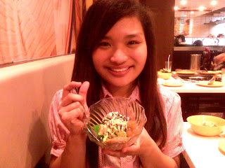 My ice cream was mango-flavored with chocolate sprinkles, marshmallows, and sago and nata de coco on the side. Karen's avocado, with all the sprinkles, and banana, sago, and nata de coco on the side.(Mine looks much much edible, don't you think? :))